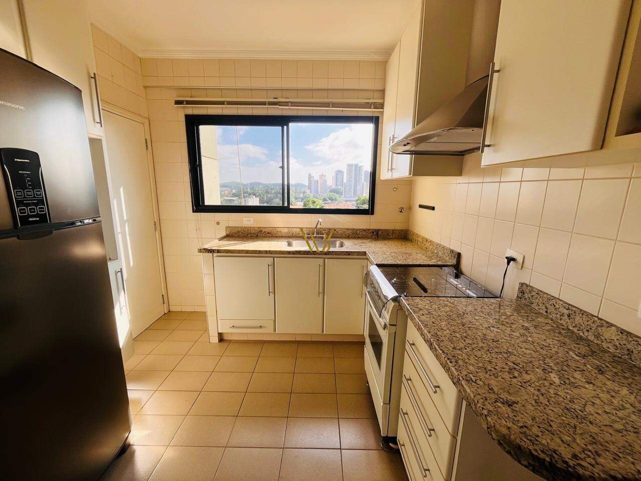 - Cozinha equipada com armários, fogão e coifa, ideal para quem gosta de praticidade no dia a dia;