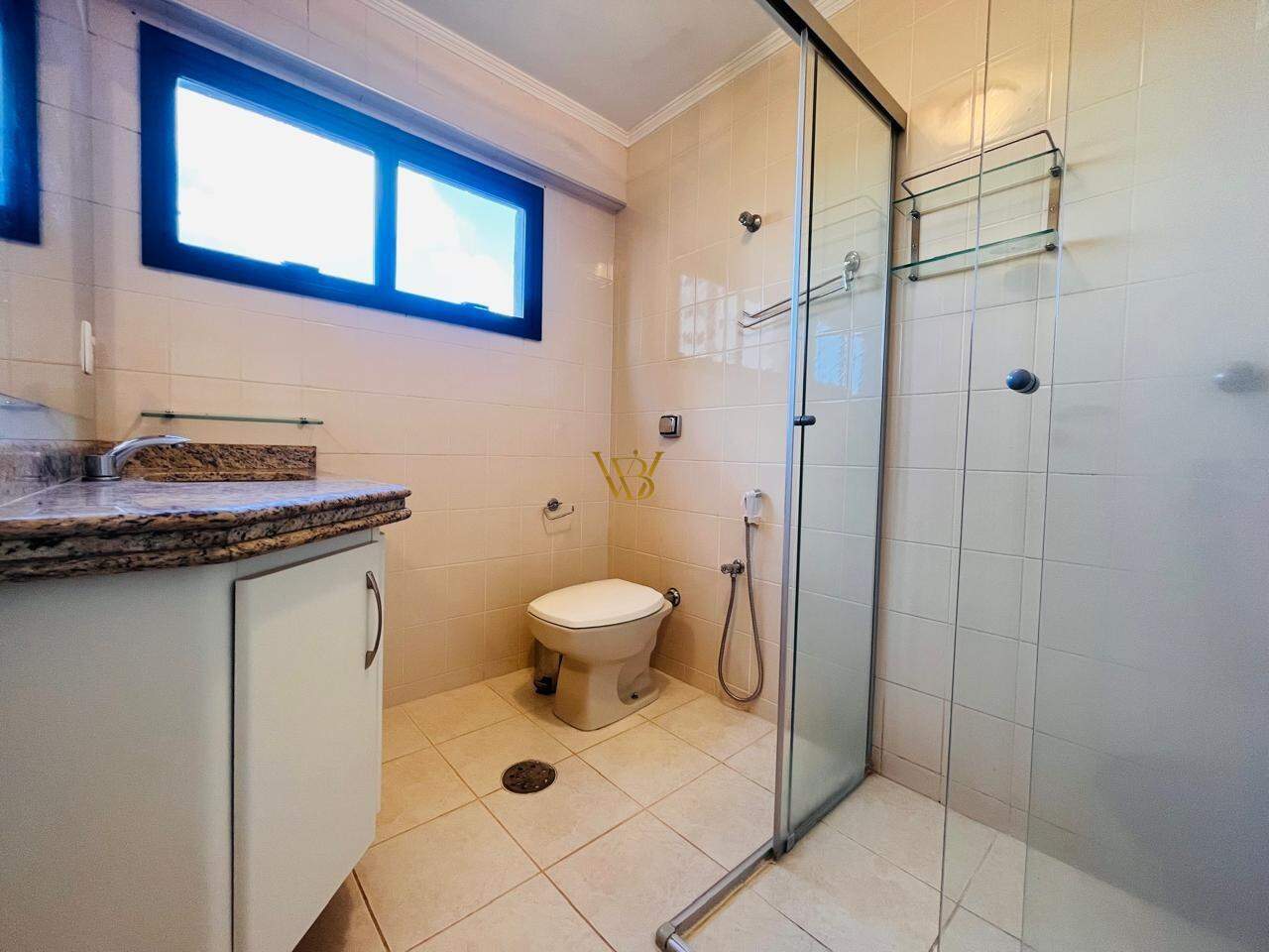 - Banheiro social com box blindex e armário, garantindo mais organização e conforto;