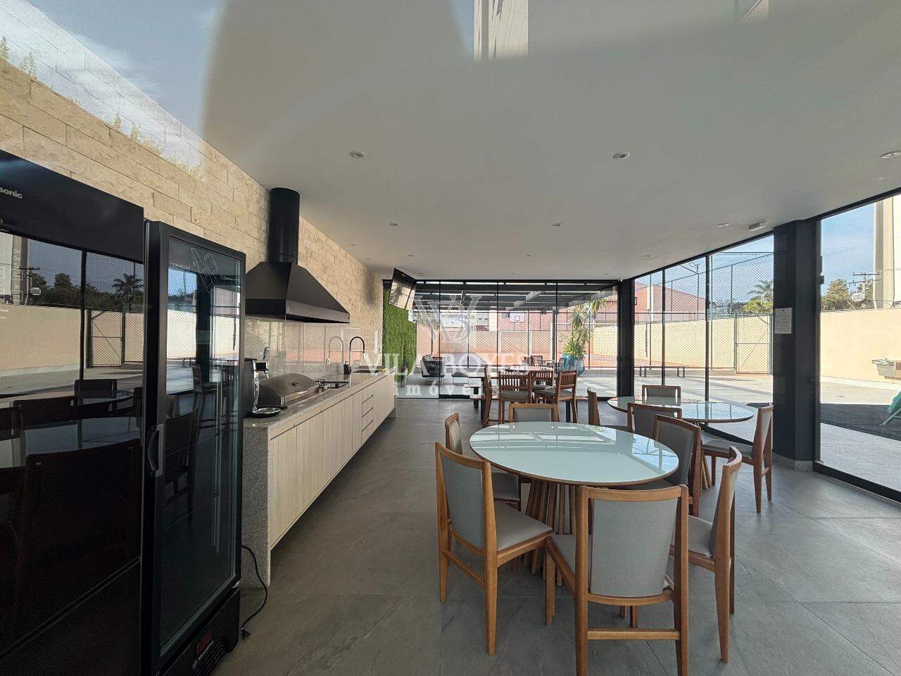 Varanda gourmet integrada à sala, churrasqueira a gás, oferecendo um espaço charmoso para convivência.