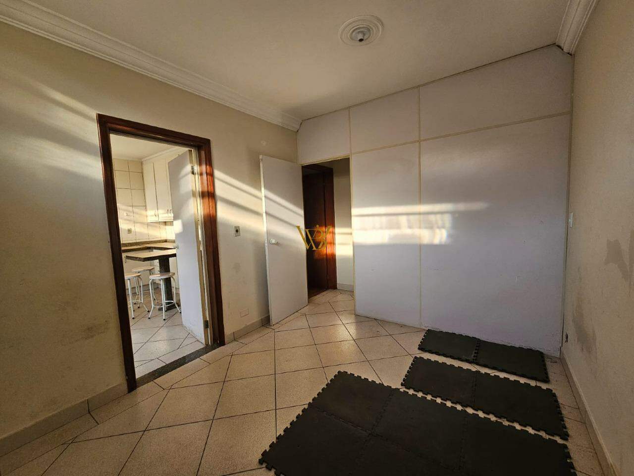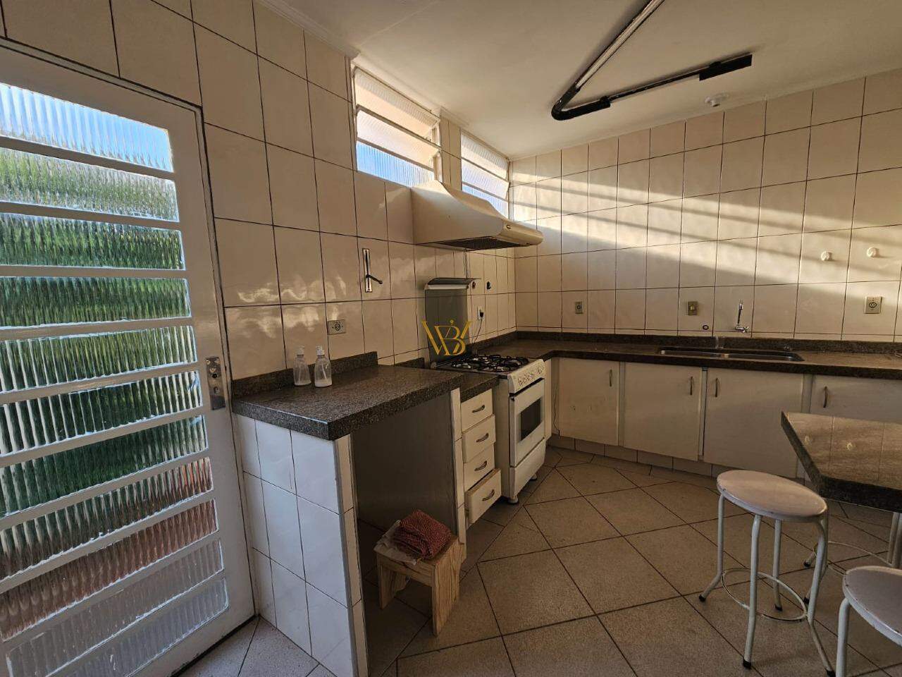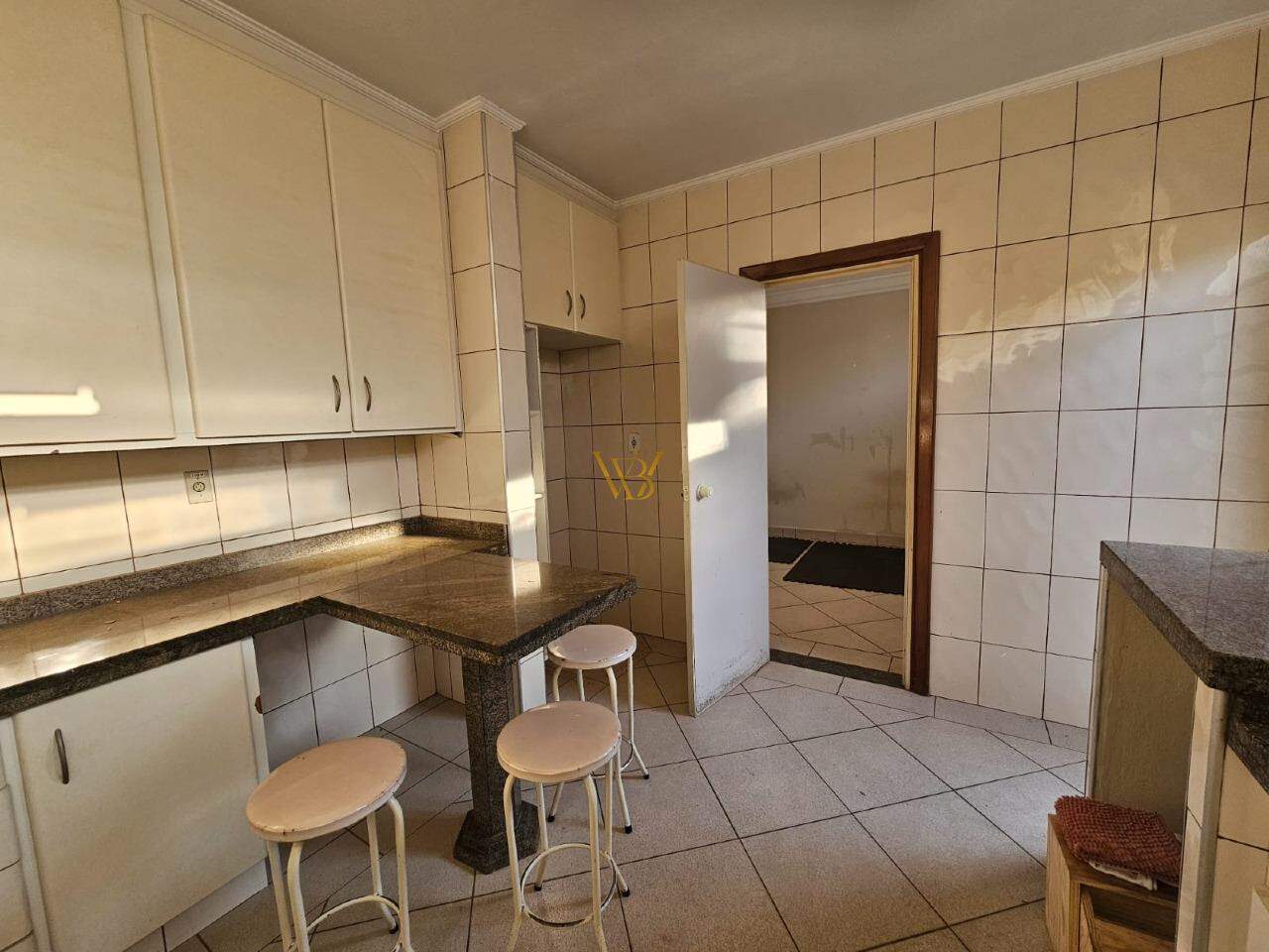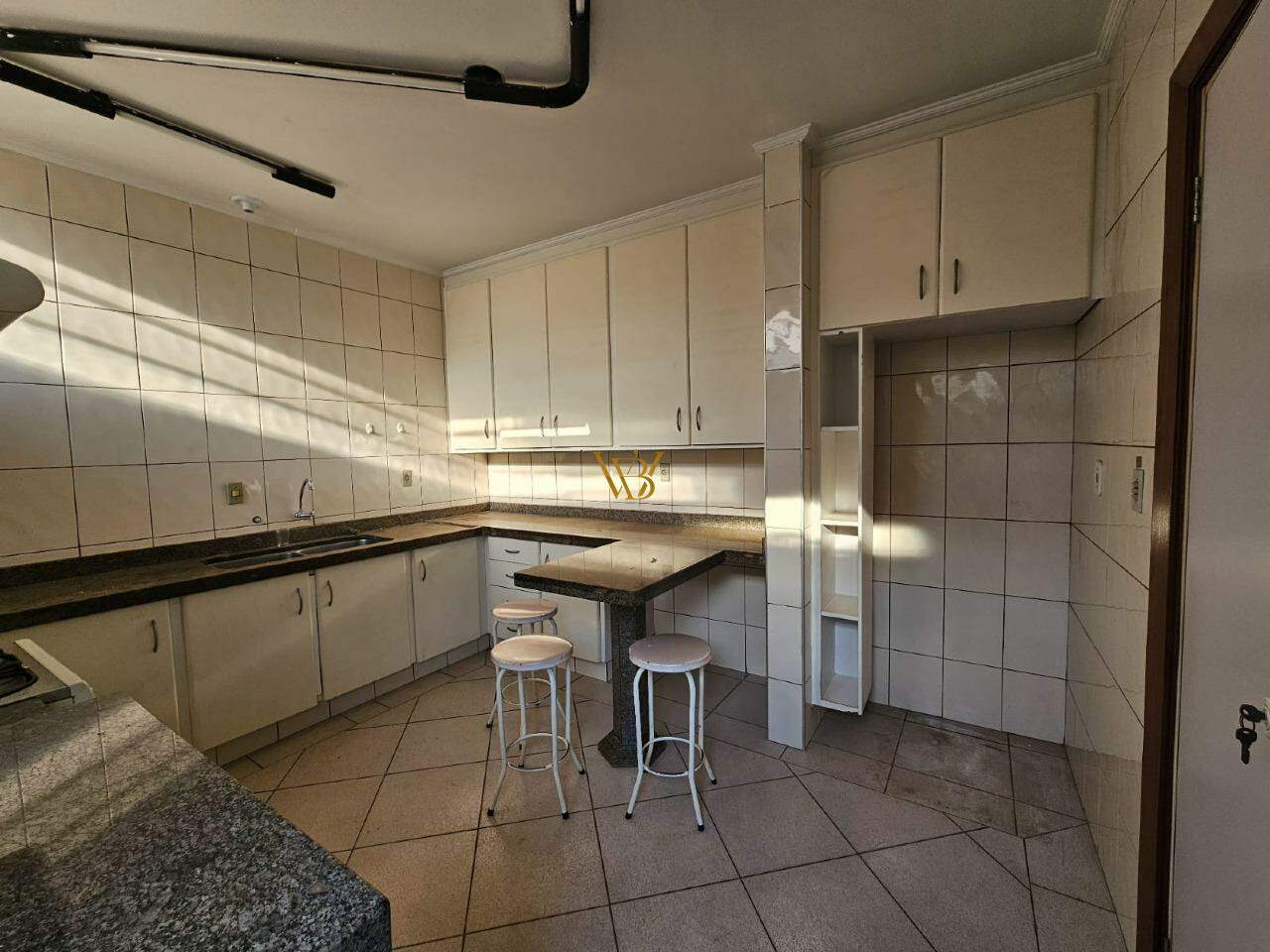 - Cozinha ampla com armários e mesa de granito