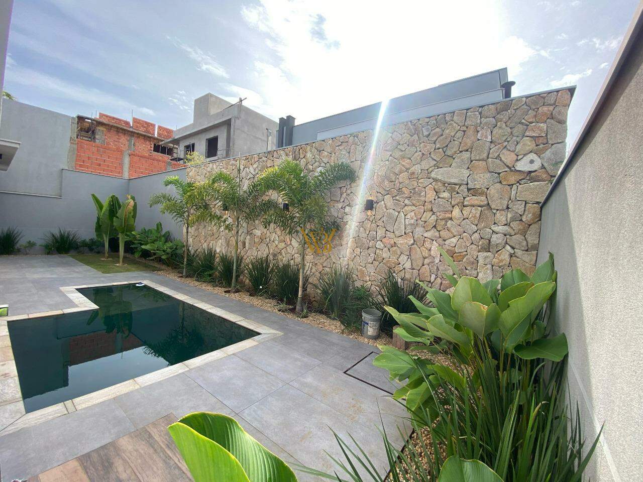Linda piscina com prainha para segurança das crianças e animais.