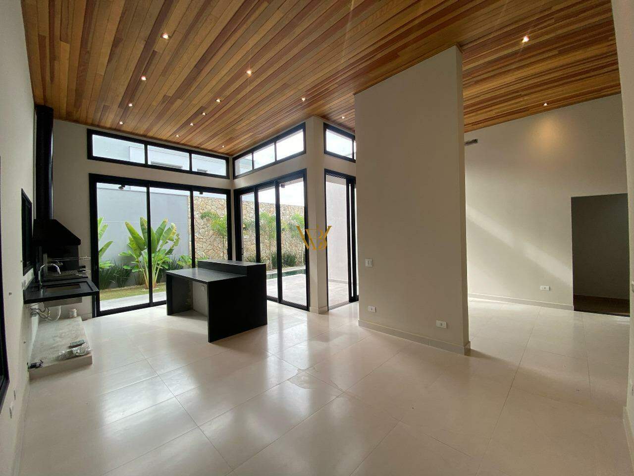 Forro de madeira natural trazendo sofisticação e conforto ao ambiente.