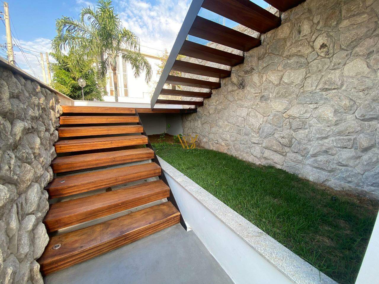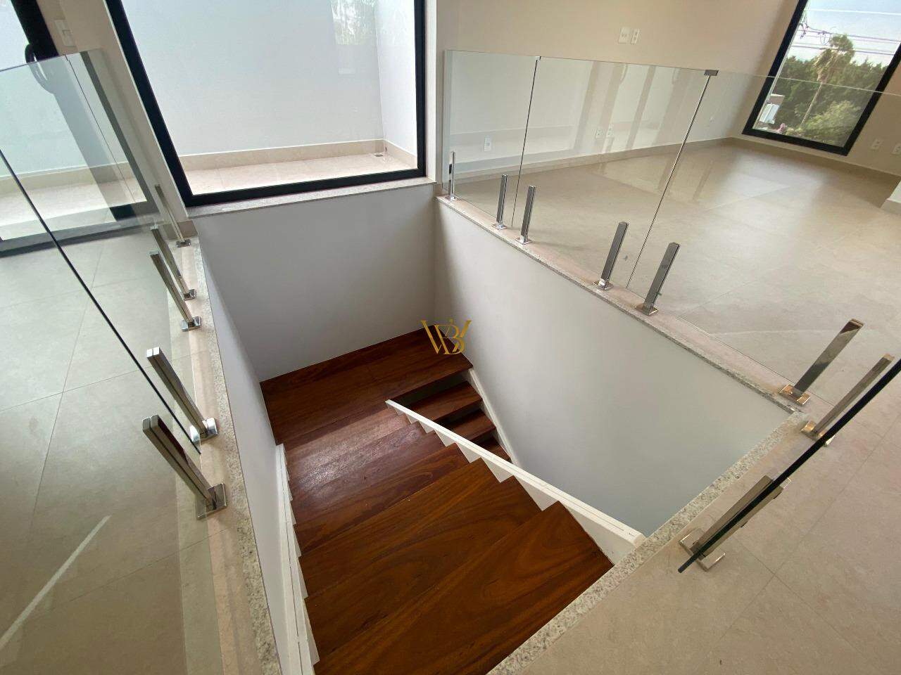Infraestrutura para ar-condicionado, portas internas são portas de giro e de correr, com pintura branca industrial de alto padrão. Nos dormitórios são persianas integradas de PVC, com motor por acionamento de controle remoto, todas as demais esquadrias da casa em Alumínio Preto, linha Suprema e Gold, além de forro de gesso em toda a casa com iluminação.